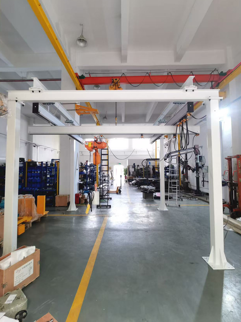 桁架機(jī)械手也叫KBK軌道系統(tǒng),是由懸掛裝置、軌道、道岔、 行走小車、電動(dòng)葫蘆、移動(dòng)供電裝置(滑線)以及控制裝置等組件組合而成。由于該產(chǎn)品只需要簡單的懸掛在廠房鋼結(jié)構(gòu)或龍門鋼結(jié)構(gòu)上通過提升設(shè)備便可實(shí)現(xiàn)物料的空中直接輸送,因此被廣泛應(yīng)用于各行各業(yè)的物料輸送環(huán)節(jié)。