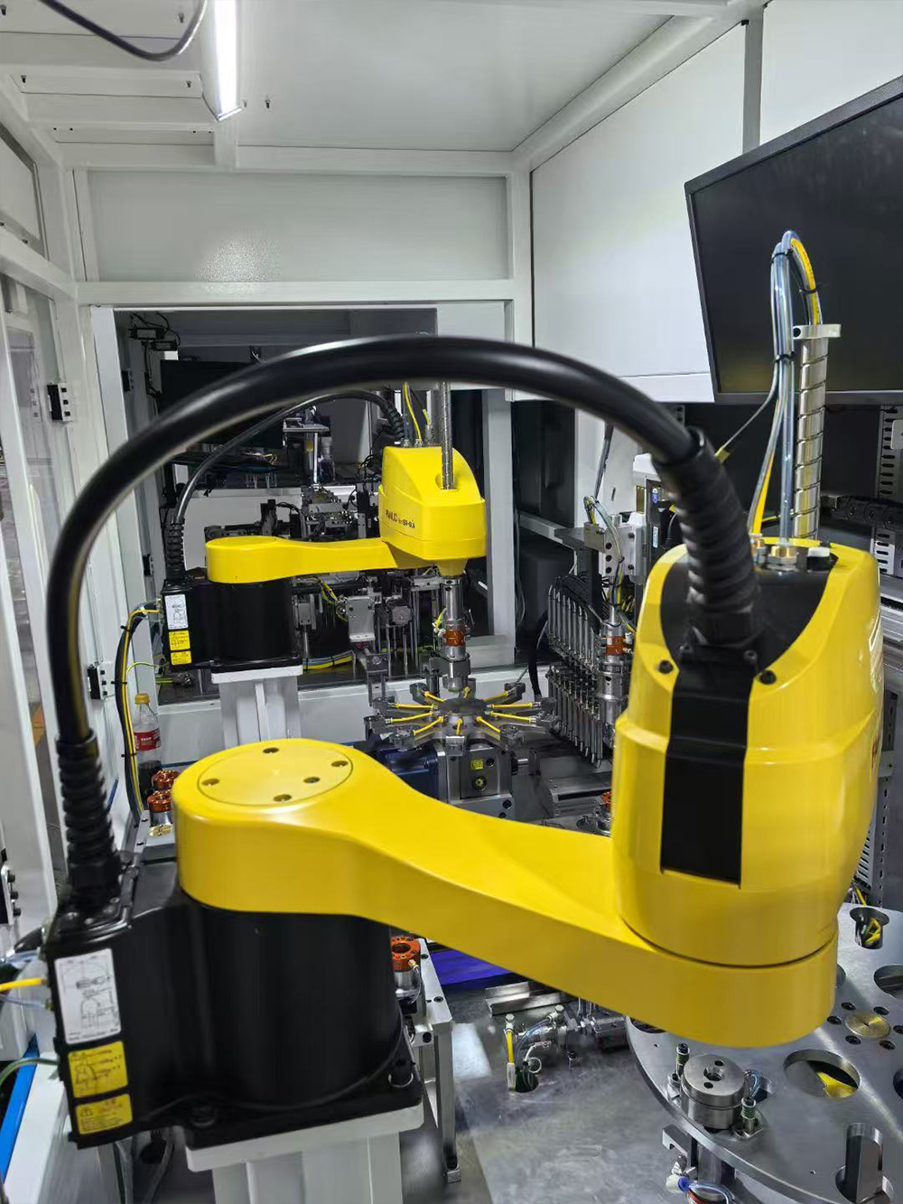 機器人自動上下料是指通過工業機器人實現工件在加工設備(如機床、注塑機等)與物料臺之間的自動化裝卸作業,是智能制造生產線的關鍵環節。該系統主要由工業機器人、視覺檢測系統、抓取夾具、物料輸送線及控制系統組成:機器人搭載專用夾具(如真空吸盤、機械爪)精準抓取工件,視覺系統對物料位置、姿態進行實時檢測與校正,確保上下料精度;控制系統協調機器人與加工設備的動作時序,實現全流程自動化。